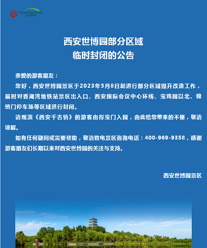 關(guān)于西安世博園部分區域臨時(shí)封閉的公告